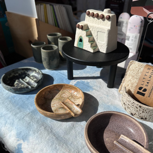 Oeste Ceramics creates small-batch functional and decorative pieces through both wheel throwing and slip casting. Inspired by the deserts of the American Southwest, each piece reflects earthy tones and natural textures. All items are food, microwave, and dishwasher safe.