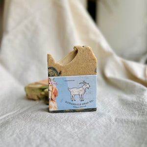 INGREDIENTS: Pasture raised goat milk, olive oil, coconut oil, tallow, castor oil, lye, colloidal oats, acv powder, aloe, neem, sweet potato powder, bentonite clay, heavy cream powder, activated charcoal.